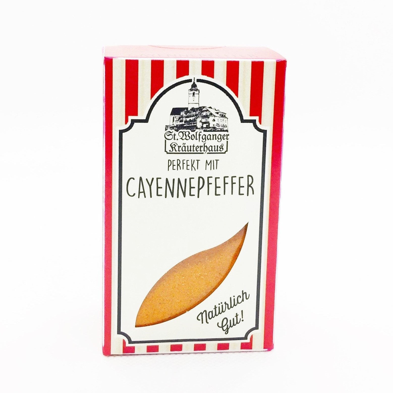 Als Cayennepfeffer werden gemahlene Chilis der Sorte Cayenne bezeichnet. Charakeristisch ist der leicht rauchige, etwas bittere Geschmack & eine intensive Schärfe, die mit 30000 bis 50000 Scoville feurig spürbar wird.