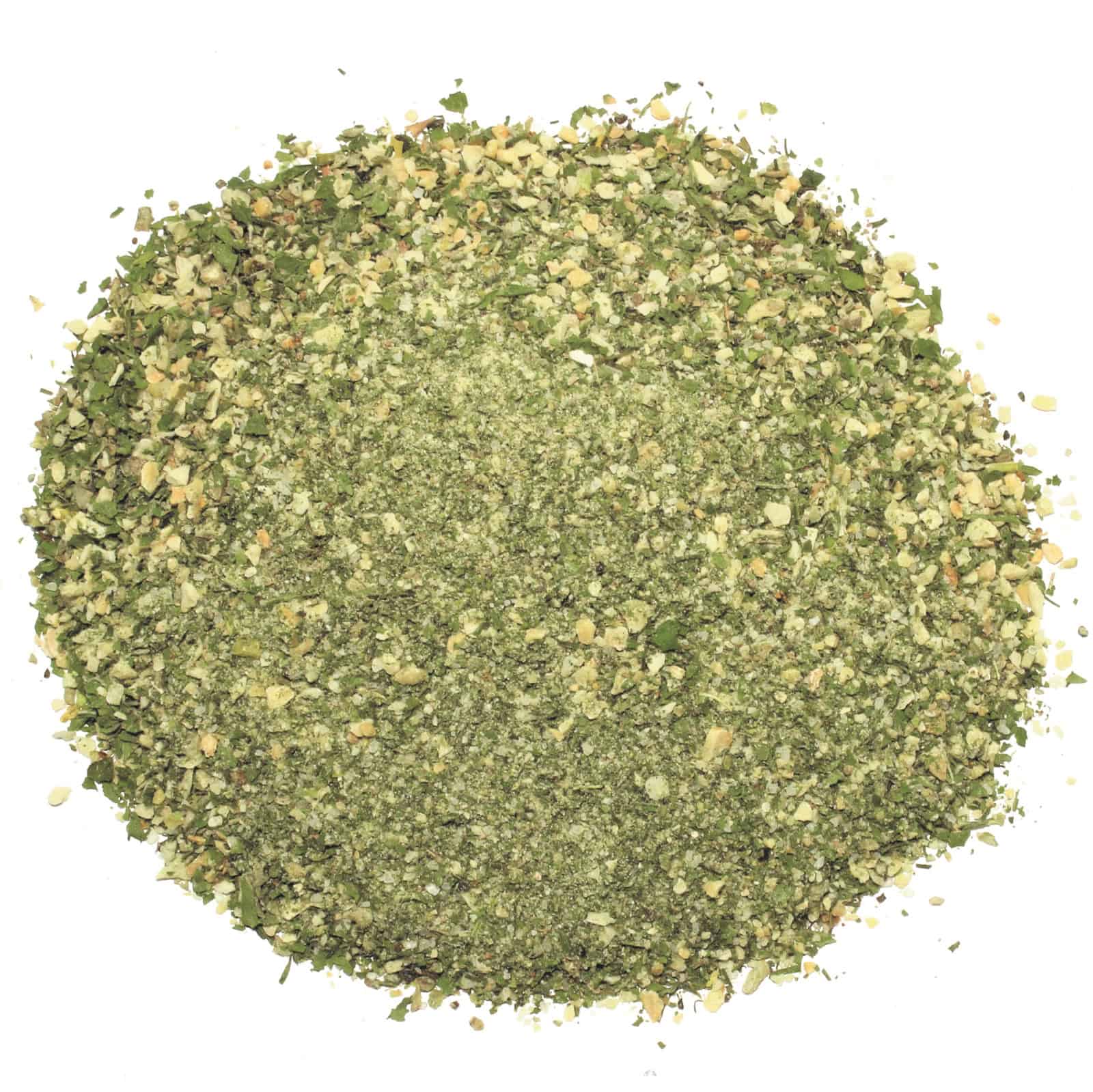 Zutaten: Knoblauch (32%), Meersalz (23%), Zwiebel, Petersilie, Dillspitzen, Pfeffer, Majoran